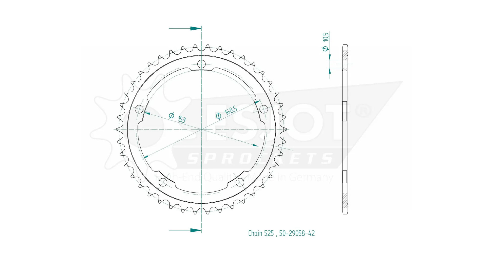 Das Esjot 525 Standard-Kettenrad hinten wurde für außergewöhnliche Leistung und Langlebigkeit entwickelt und erfüllt die strengen Anforderungen der Erstausrüster. Dieses Kettenrad ist so konstruiert, dass es auch unter stark beanspruchten Bedingungen in verschiedenen Fahrumgebungen zuverlässig und langlebig ist.