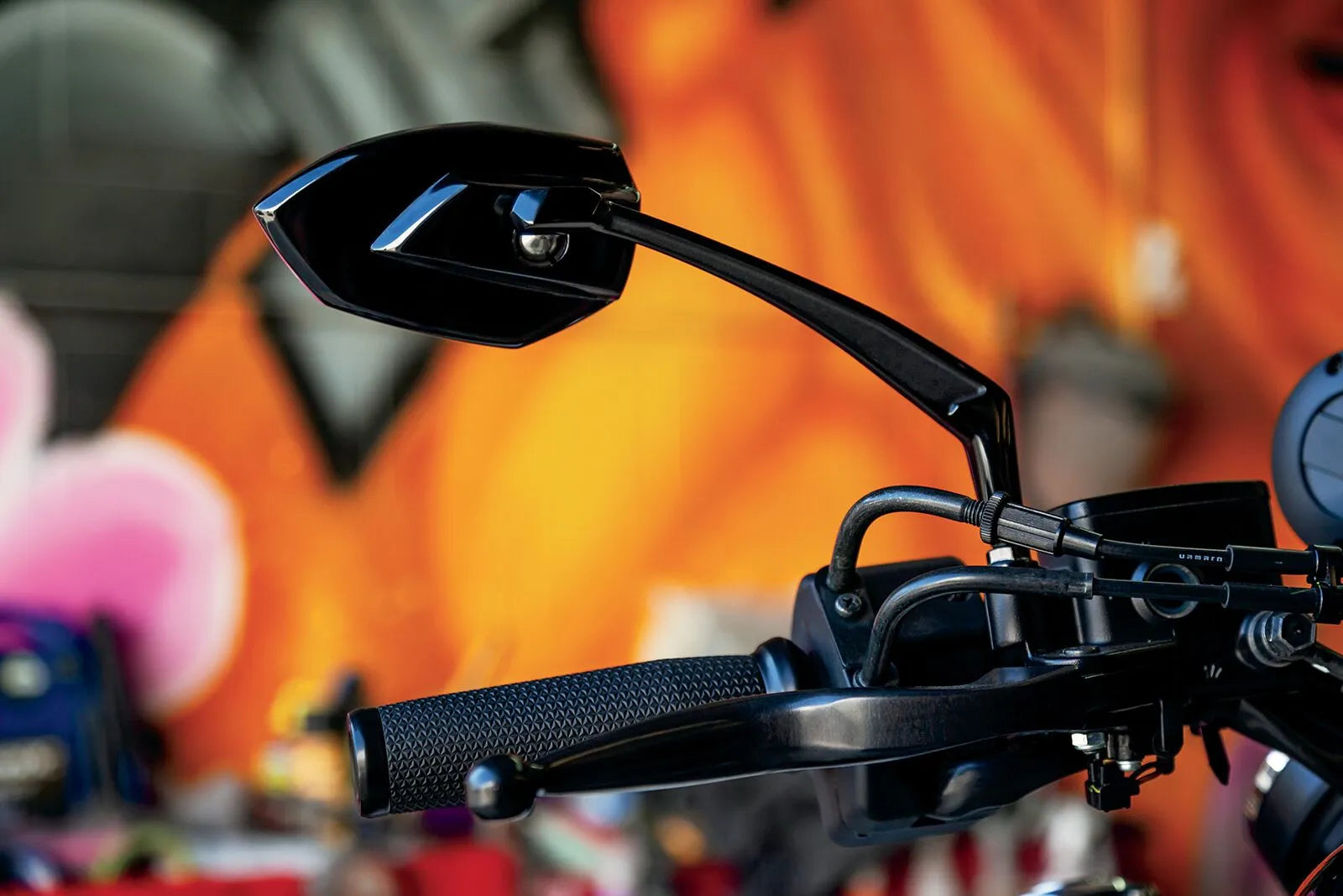 Die Kuryakyn Phantom Spiegel bestechen durch ihr aggressives, kantiges Design, das jedem Motorrad eine individuelle Note verleiht. Gefertigt aus hochwertigem, geschmiedetem Aluminium mit schwarz eloxierter Oberfläche, sind diese Spiegel ebenso robust wie stilvoll. Das konvexe Spiegelglas erweitert Ihr Sichtfeld deutlich und bietet Ihnen eine breitere Sicht auf die Straße hinter Ihnen. Die präzisionsgefertigte Edelstahlkugel und die Nylonbuchse ermöglichen eine reibungslose, sichere und präzise Positionierung, sodass die Spiegel genau dort bleiben, wo Sie sie benötigen. Diese Seitenspiegel sind für eine einfache Montage konzipiert und mit OEM- oder Kuryakyn-Griffen kompatibel. Ob Sie Harley-Fan sind oder ein Motorrad mit verschiedenen Passformen fahren – diese Spiegel bieten die perfekte Kombination aus Form und Funktion und verbessern sowohl die Optik als auch die Sicherheit Ihrer Fahrt.