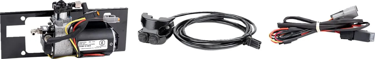 Das Legend Luftfederungssystem nutzt exklusive Aramidfaser-Luftfedertechnologie und bietet eine hervorragende Einstellbarkeit der Federrate, um Ihren individuellen Fahrpräferenzen und Beladungsbedingungen gerecht zu werden. Die Luftfedern maximieren den Federweg und sorgen so für ein sanftes und reaktionsschnelles Fahrgefühl auf unterschiedlichem Terrain. Passen Sie die Fahrzeughöhe während der Fahrt mit dem mitgelieferten, optisch ansprechenden, schwarzen Lenkerregler an und wechseln Sie nahtlos zwischen Komfort und Performance. Das System verfügt über CNC-gefräste Aluminiumgehäuse mit harteloxierter Typ-III-Beschichtung in Schwarz für außergewöhnliche Langlebigkeit und eine elegante Optik. Das reibungsarme Dichtungssystem und die Gleitlager verbessern Performance und Fahrgefühl, während der Hochleistungskolben schnell reagiert und so für ein optimiertes Flüssigkeitsmanagement sorgt. Die Umlenkscheibenventile passen sich automatisch der Frequenz an und garantieren kontrollierte Performance in allen Fahrsituationen. Die Installation wird durch einen vorverdrahteten Luftkompressor mit modellspezifischer Montage, einen kompletten Kabelbaum und drei einfache Deutsch-Anschlüsse vereinfacht.
