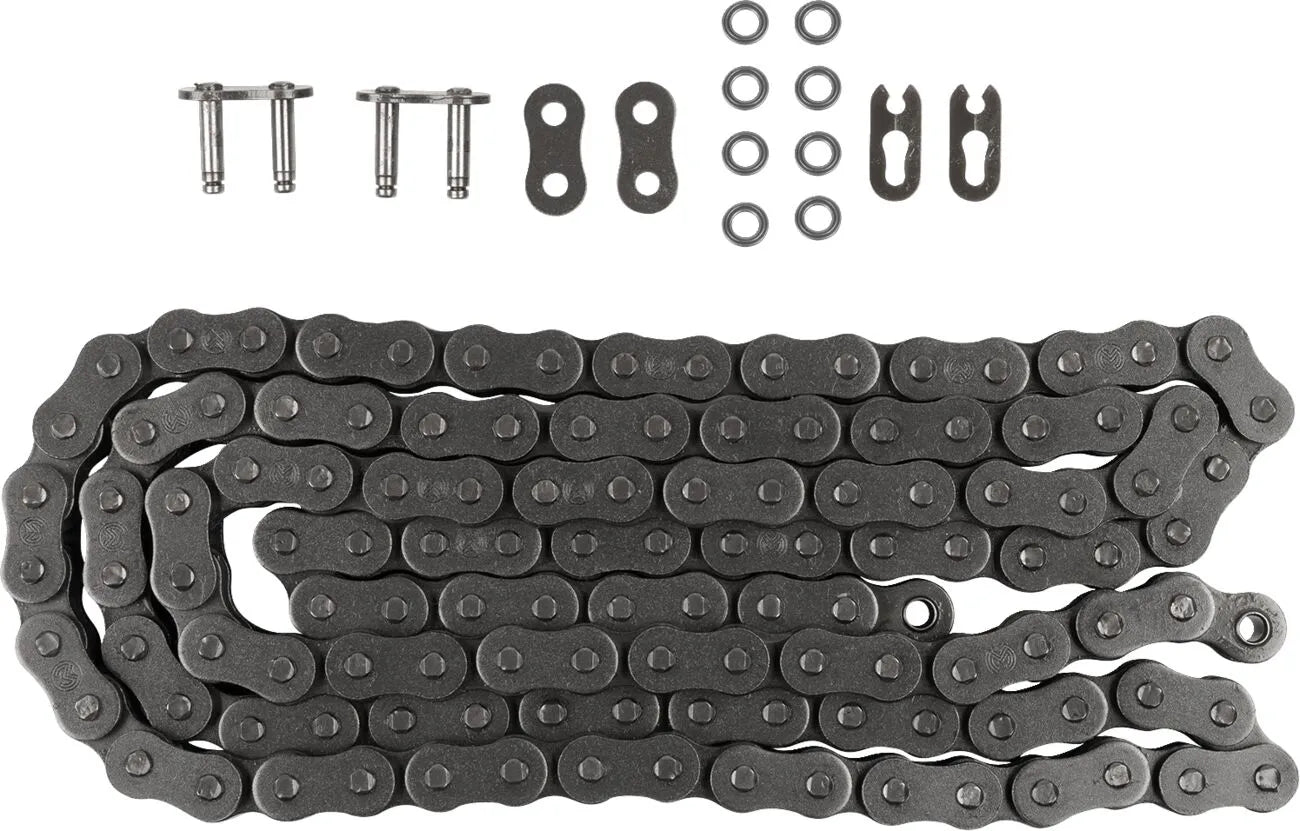 Die Moose Offroad 525 X-Ring-Antriebskette verfügt über eine innovative, X-förmige, selbstschmierende Dichtung, die die kritischen Komponenten konstant schmiert. Diese Konstruktion bietet eine bis zu siebenmal höhere Verschleißfestigkeit im Vergleich zu herkömmlichen O-Ring-Ketten, was die Lebensdauer der Kette deutlich verlängert und die Wartungsintervalle reduziert. Die Kette ist mit besonders hochfesten Laschen ausgestattet, die auch unter anspruchsvollen Bedingungen eine außergewöhnliche Dehn- und Bruchfestigkeit gewährleisten. Rostbeständige Seitenplatten schützen vor Korrosion und sorgen so für dauerhafte Leistung bei allen Witterungsbedingungen. Massive Rollen-Innenglieder und Innenbuchsen erhöhen die Festigkeit und Haltbarkeit und tragen zu einer gleichmäßigen und effizienten Kraftübertragung bei. Die Montage wird durch das mitgelieferte Clip-Verbindungsglied vereinfacht.