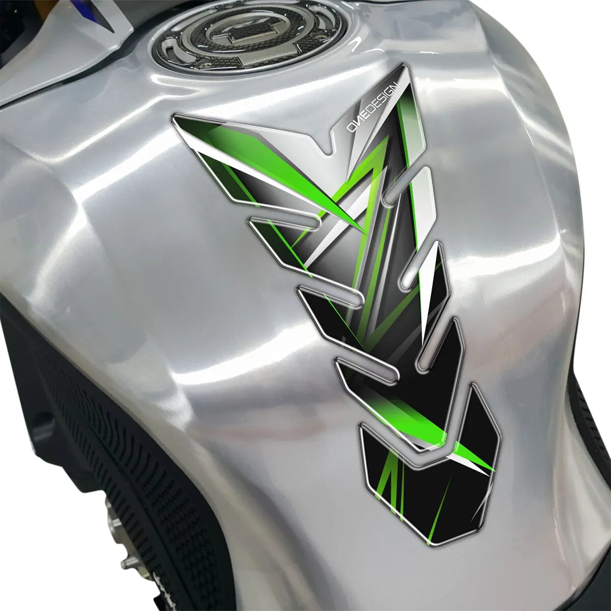 Das Onedesign Tankpad ist aus hochwertigem Kunstharz gefertigt und bietet außergewöhnlichen Schutz sowie eine elegante, weiche Oberfläche. Dank der selbstklebenden Rückseite lässt es sich einfach und sicher an nahezu jedem Sport-, Touring- oder Straßenmotorrad anbringen. Sein universelles Design fügt sich nahtlos in die Optik Ihres Motorrads ein und verleiht ihm eine individuelle Note, während es gleichzeitig Ihren wertvollen Lack schützt. Erhältlich in Schwarz und Grün, ist dieses Tankpad ein einfaches, aber effektives Upgrade, um Ihr Motorrad vor alltäglichen Gebrauchsspuren zu bewahren.Funktionen und Highlights