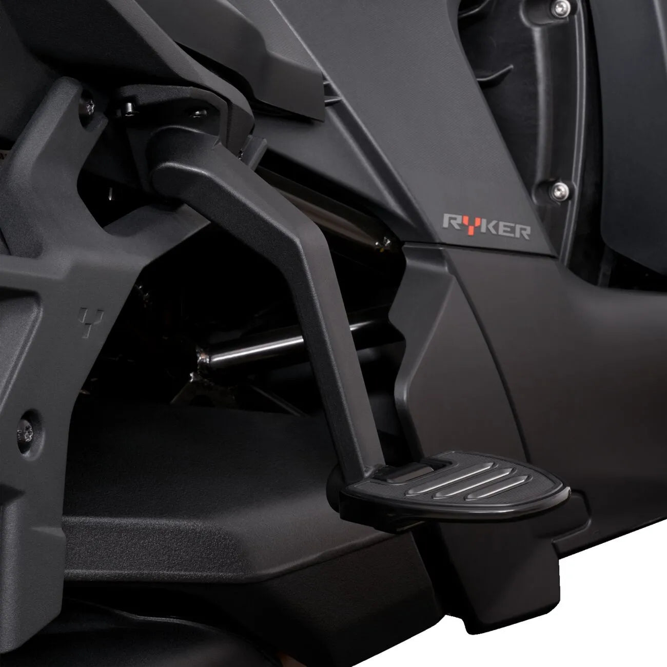 Diese verstellbaren Trittbretter für den Beifahrer sind aus CNC-gefrästem, geschmiedetem Aluminium gefertigt und garantieren so außergewöhnliche Stabilität und Langlebigkeit. Die großzügige 10,16 cm x 10,16 cm große Trittfläche bietet optimale Unterstützung und ermöglicht es dem Beifahrer, die Füße bequem zu positionieren und auch auf längeren Fahrten komfortabel zu bleiben. Hochdichte Gummieinsätze dämpfen Vibrationen effektiv, erhöhen den Komfort zusätzlich und minimieren das Verrutschen. Dank des verstellbaren Drehwinkels können die Trittbretter optimal an den Fahrstil Ihres Beifahrers angepasst werden. Ein praktischer Schalter ermöglicht die einfache Aktivierung des Beifahrer-Federungsmodus Ihres Ryker, wenn Sie mit einem Beifahrer fahren, und die Deaktivierung bei Solofahrten. Die Montage ist unkompliziert, alle benötigten Befestigungsmaterialien sind im Lieferumfang enthalten. Das Verdrehsicherungssystem ermöglicht eine individuelle Positionierung je nach Vorliebe des Beifahrers und sorgt so für einen sicheren und komfortablen Halt.