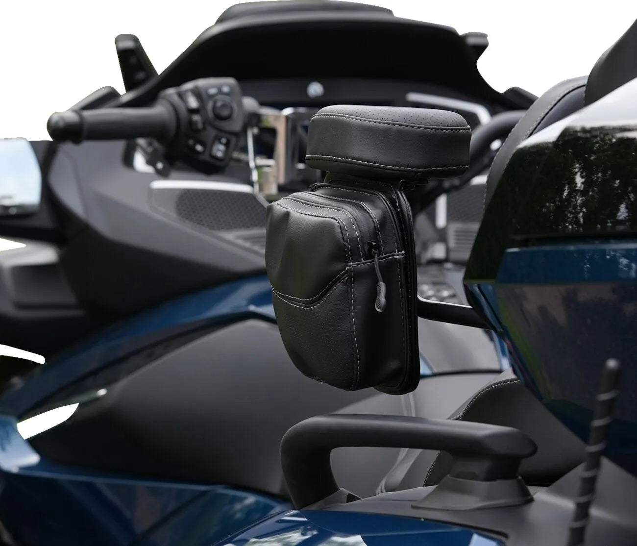 Die Show Chrome Platinum Armlehnen werten Ihr Tourenerlebnis mit ihrem luxuriösen Premium-Stoff auf, der perfekt zum Originalstoff Ihrer Spyder RT LTD passt. Diese Armlehnen verbessern nicht nur die Optik, sondern bieten auch außergewöhnlichen Komfort für Ihren Beifahrer. Die speziell entwickelten Stahlhalterungen gewährleisten einen bequemen Einstieg für den Beifahrer und lassen den Stauraum uneingeschränkt nutzbar. Jede Armlehne ist handgenäht und sorgt so für einen luxuriösen, edlen Look, der sich perfekt in das Originaldesign des Motorrads einfügt. Die Armlehnen werden sicher unter dem hinteren Teil des Sitzes am Rahmen befestigt und bieten so ein stabiles und zuverlässiges Stützsystem für lange Fahrten. Genießen Sie die Sicherheit eines in den USA hergestellten Produkts mit lebenslanger Garantie, die für dauerhafte Qualität und Langlebigkeit sorgt. Werten Sie Ihre Fahrt mit der Show Chrome Platinum Armlehne auf und bieten Sie Ihrem Beifahrer ultimativen Komfort und Stil. Verbessern Sie den Komfort Ihres Motorrads mit diesen Armlehnen – eine komfortable Alternative für lange Fahrten. Die Montage ist in wenigen Minuten erledigt. Das ultimative Fahrerlebnis für Ihren Beifahrer!
