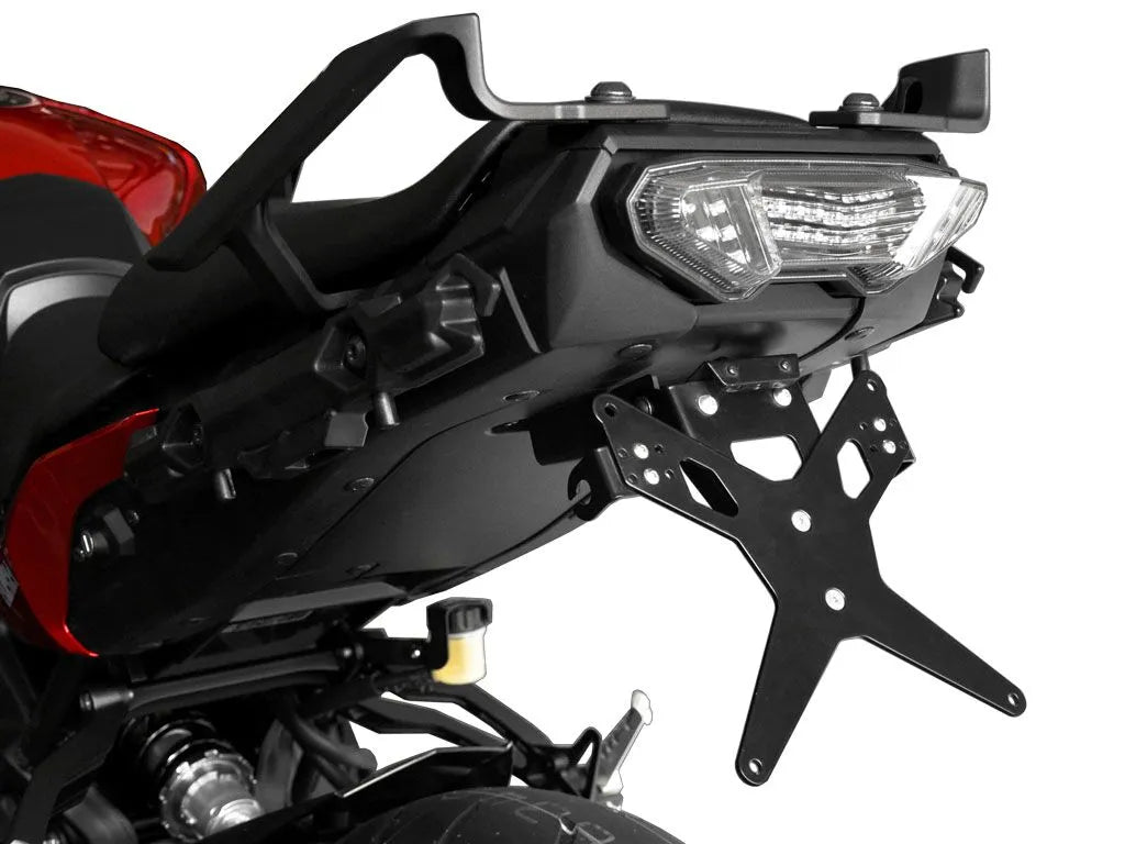 Der Zieger X-Line Kennzeichenhalter ist aus hochwertigem Aluminium gefertigt und mit einer schwarzen Pulverbeschichtung versehen, die für außergewöhnliche Langlebigkeit und Witterungsbeständigkeit sorgt. Er ist für Kennzeichen mit einer Breite von 175 mm geeignet und bietet somit eine breite Kompatibilität. Die Montage ist unkompliziert und erfordert keine Änderungen an der Verkleidung Ihres Motorrads. Dank der stufenlosen Neigungswinkelverstellung können Sie den Winkel individuell an Ihre Wünsche anpassen. Die Blinkerhalterungen sind dreifach verstellbar und bieten so weitere Anpassungsmöglichkeiten. Versenkte Schrauben gewährleisten eine bündige Montage des Kennzeichens und tragen zum eleganten Erscheinungsbild bei. Werten Sie das Heck Ihres Motorrads mit diesem sportlichen und passgenauen Kennzeichenhalter auf.